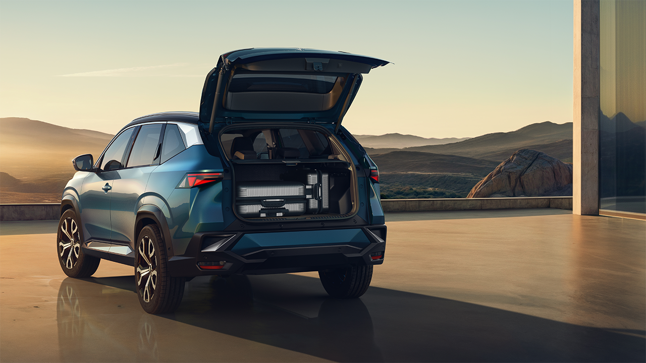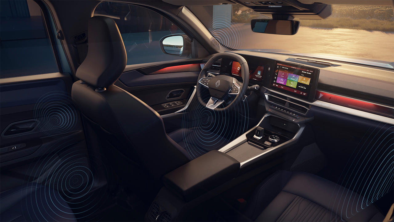 Renault Boreal ofrece un baúl con capacidad de 586L, con apertura trasera de manos libres. Diseño orientado al conductor con asientos de masaje con memoria para la máxima comodidad, techo solar panorámico de apertura eléctrica y sistema de sonido premium Harman Kardan®.