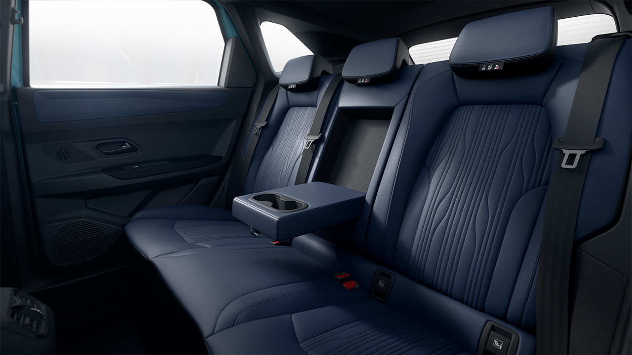 Carga inalámbrica de smarthphones, 48 colores de ambient lighting interior, consola central elevada con espacio refrigerado, 243 mm de espacio para tus rodillas, apoyabrazos trasero con portavasos integrado.